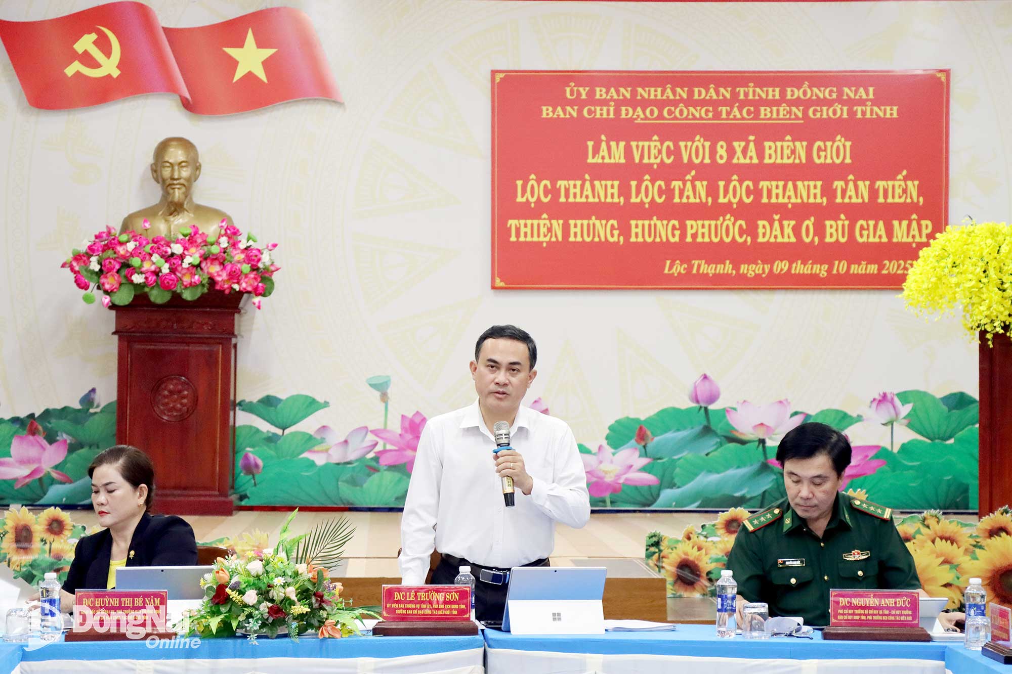 Chiều 9-10, tại xã Lộc Thạnh, Ủy viên Ban Thường vụ Tỉnh ủy, Phó Chủ tịch UBND tỉnh, Trưởng ban Chỉ đạo công tác biên giới tỉnh Đồng Nai Lê Trường Sơn chủ trì buổi làm việc với 8 xã biên giới của tỉnh gồm: Bù Gia Mập, Đăk Ơ, Hưng Phước, Thiện Hưng, Tân Tiến, Lộc Tấn, Lộc Thạnh, Lộc Thành về triển khai hoạt động đối ngoại, quản lý biên giới và một số nhiệm vụ sau sáp nhập theo mô hình chính quyền địa phương 2 cấp.