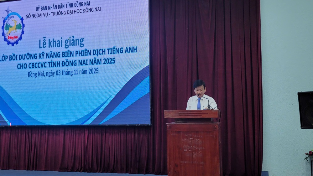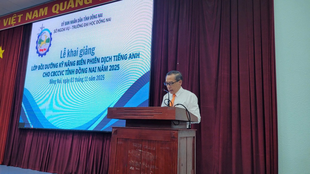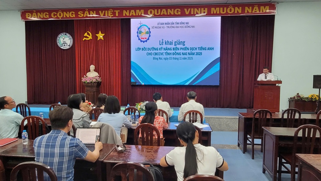 Sáng ngày 03/11/2025, tại Trường Đại học Đồng Nai đã diễn ra Lễ khai giảng Lớp bồi dưỡng kỹ năng biên, phiên dịch tiếng Anh dành cho CBCCVC tỉnh Đồng Nai năm 2025 do Sở Ngoại vụ chủ trì, phối hợp với Trường Đại học Đồng Nai tổ chức.